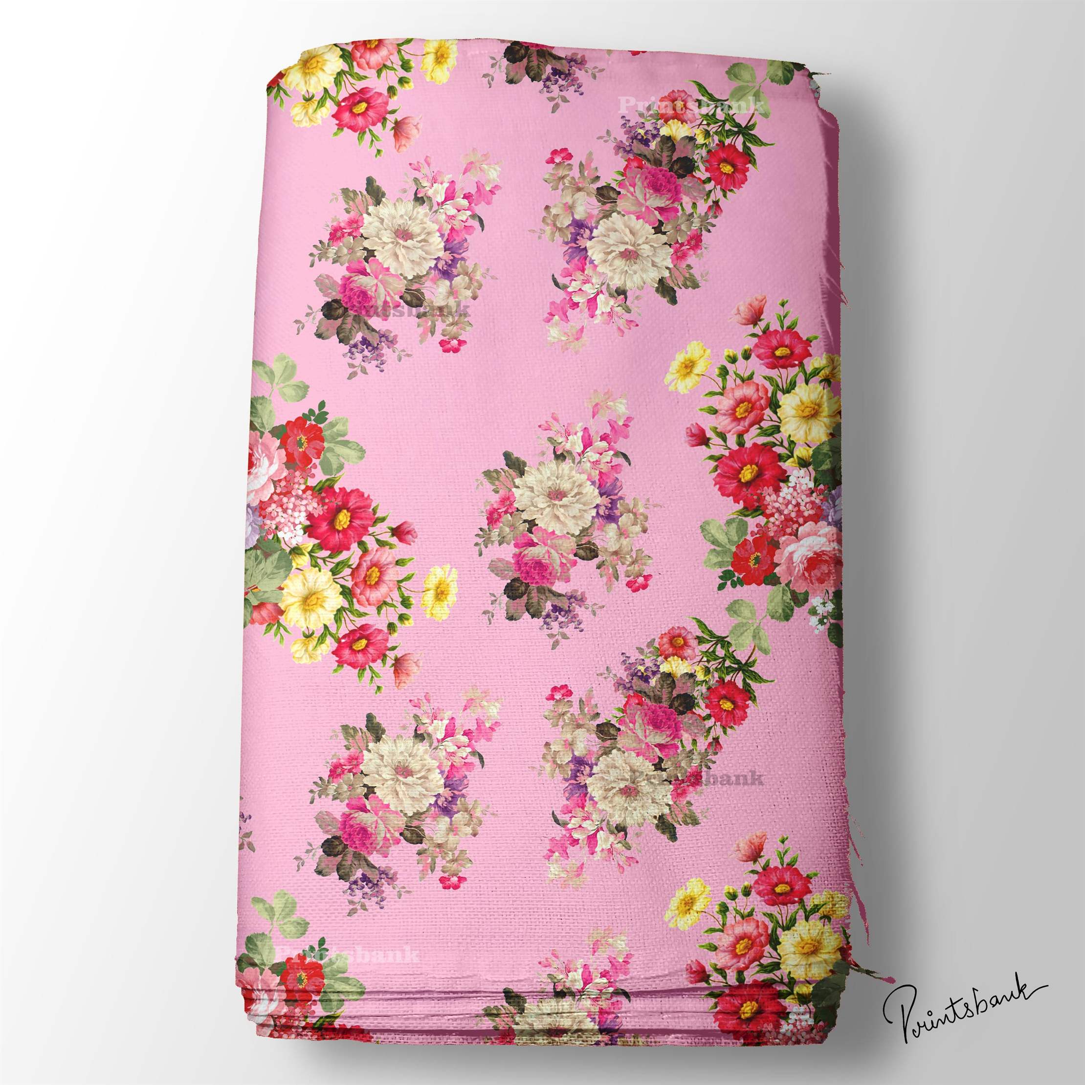 Baby Pink With Festive Bunch Floral Digital Printed Fabric For Kid's Dress