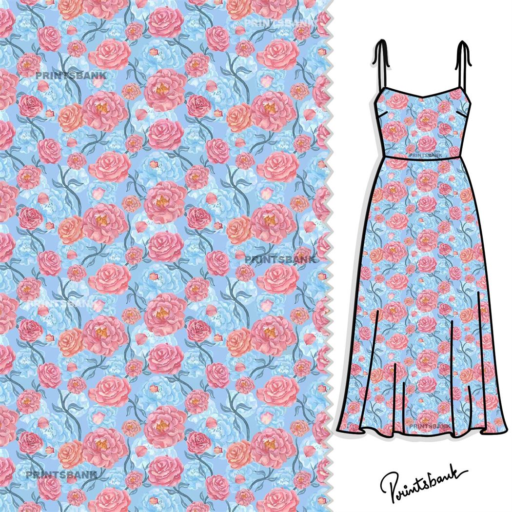 Pink Rose Pastel Blue Floral Jaal