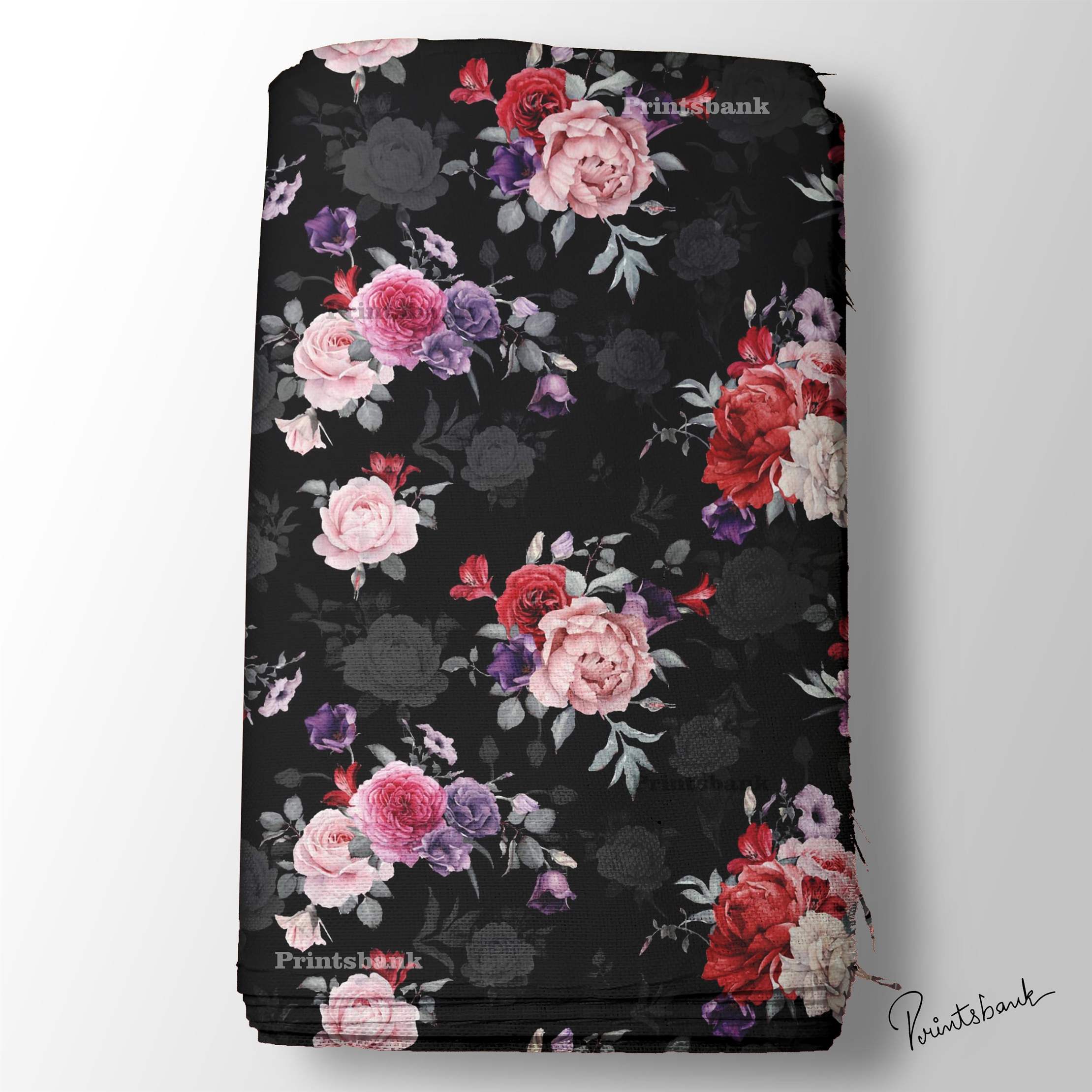Black Bunch Rose 3D Floral Printed Fabric Material