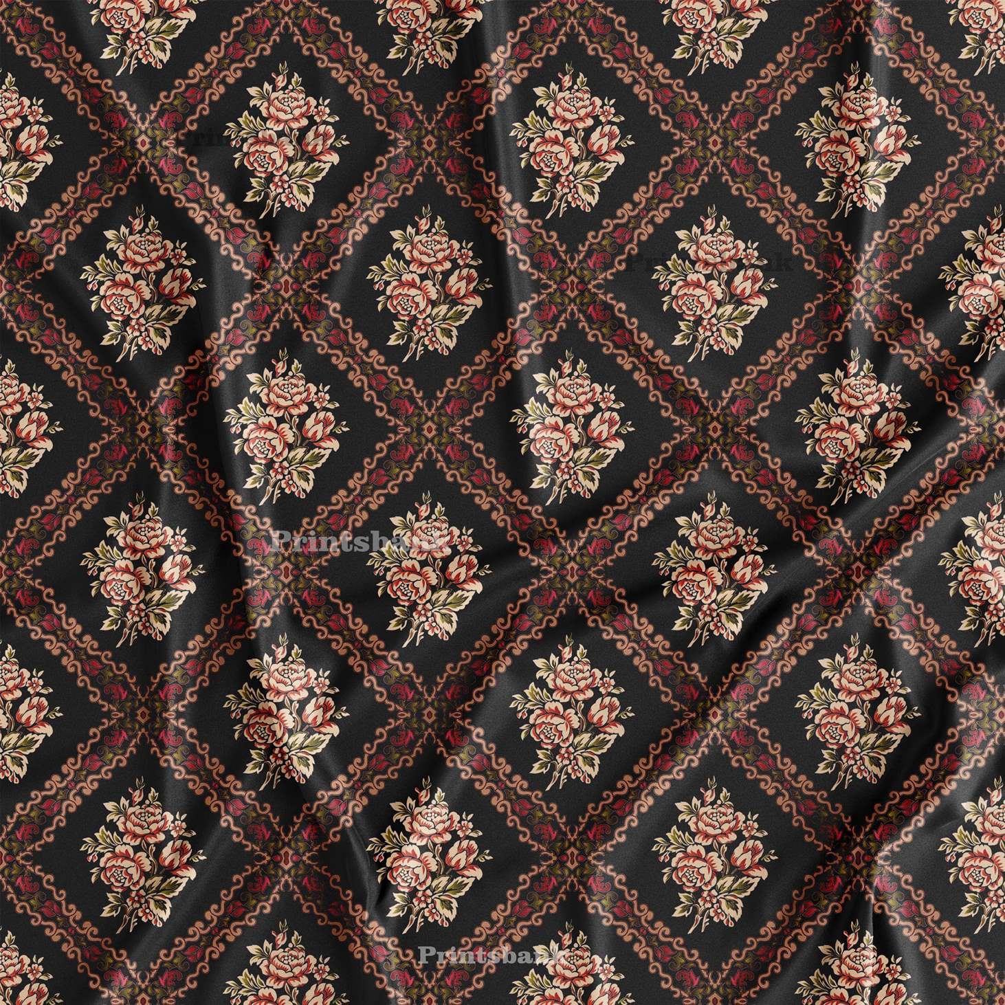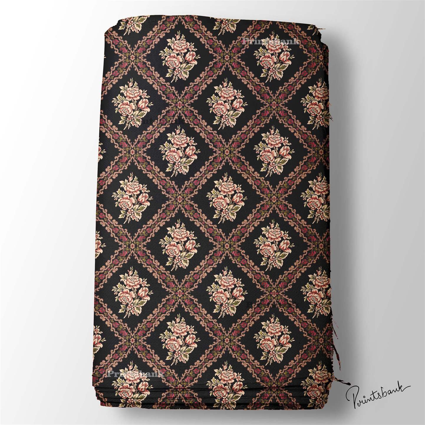 Black Floral Printed Wholesale Fabric For Kurti
