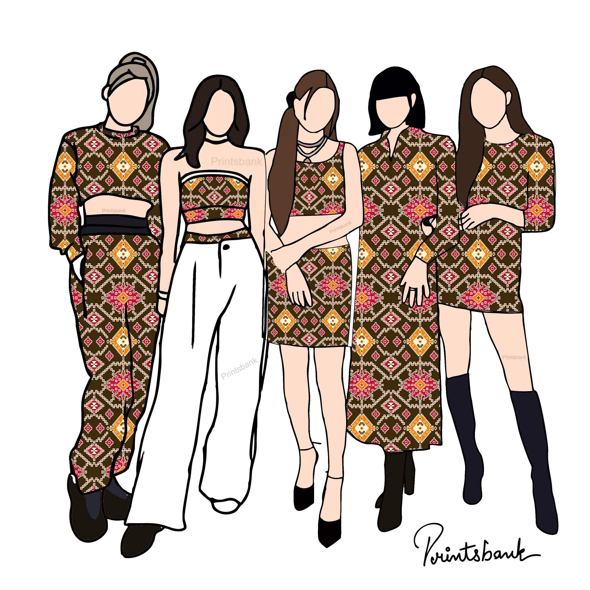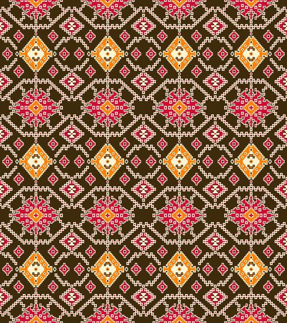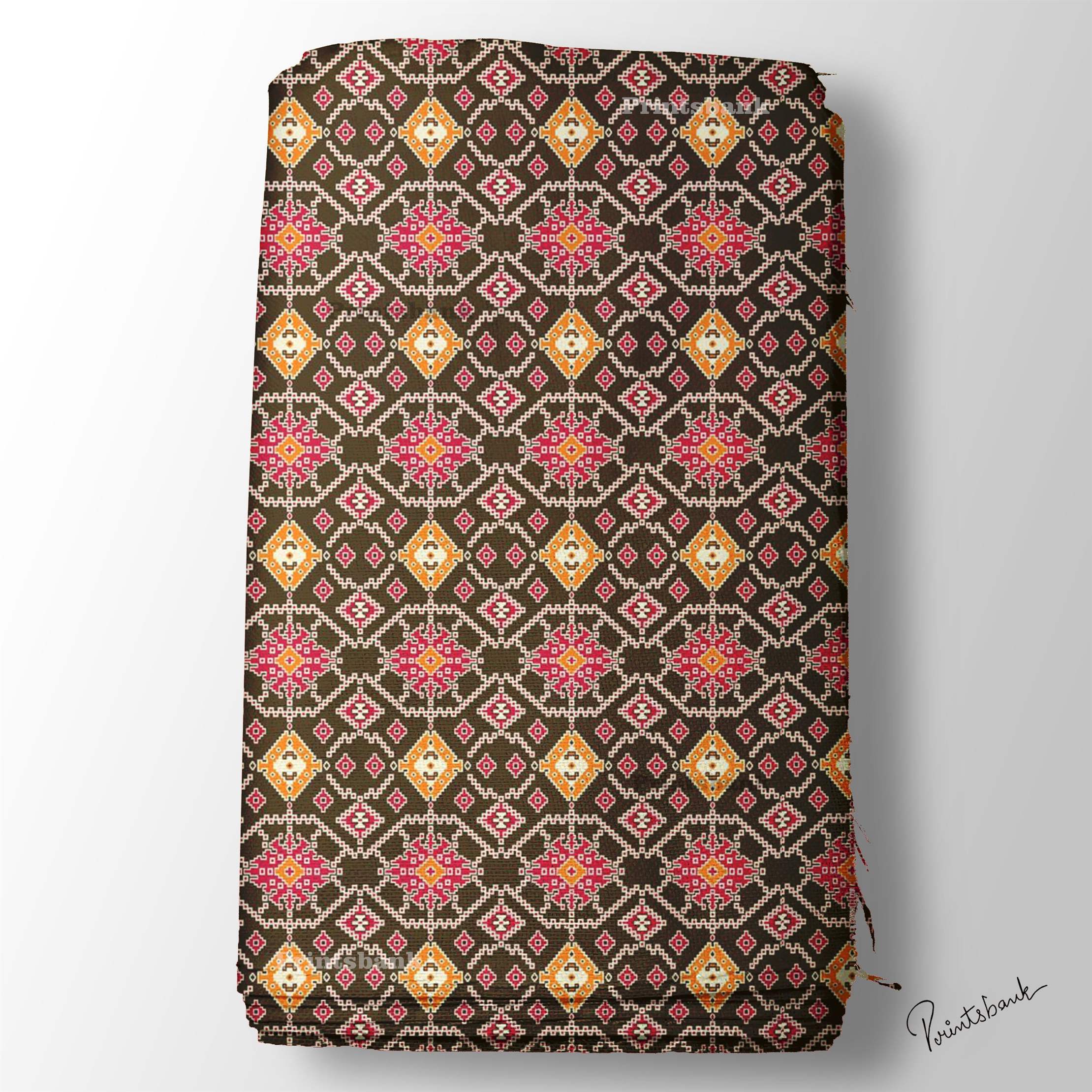Black Red Geometrical Patola Digital Printed Fabric Material
