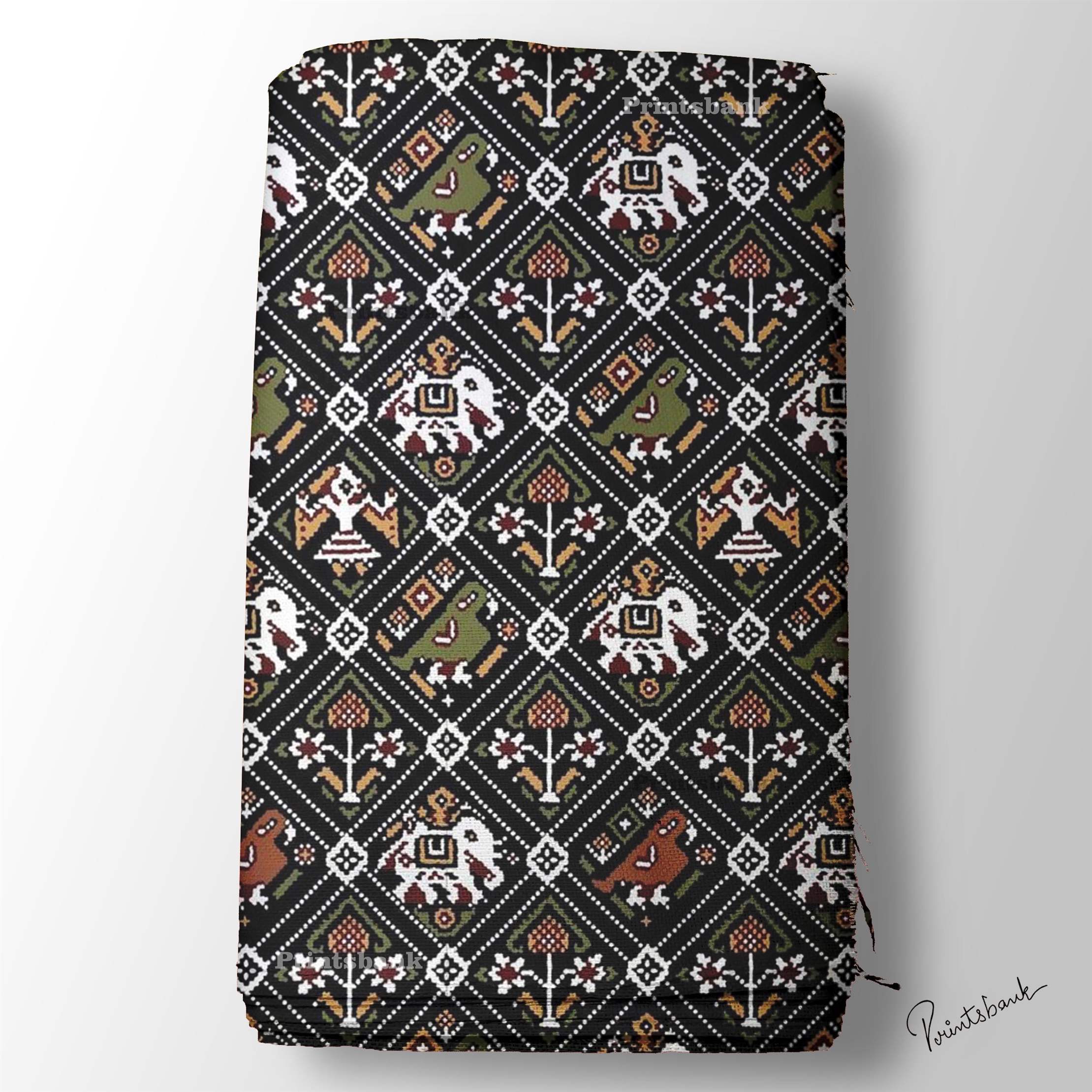 The designs include leaf forms, geometrical forms, floral forms, architectural forms, flowering plants, creepers, animals and human figures. Digitally printed Patola patterns are something unique. You can wear these fabrics during festive days and special occasions. One can make dresses, Kurti, dupatta, sarees, tops, and much more using this fabric.