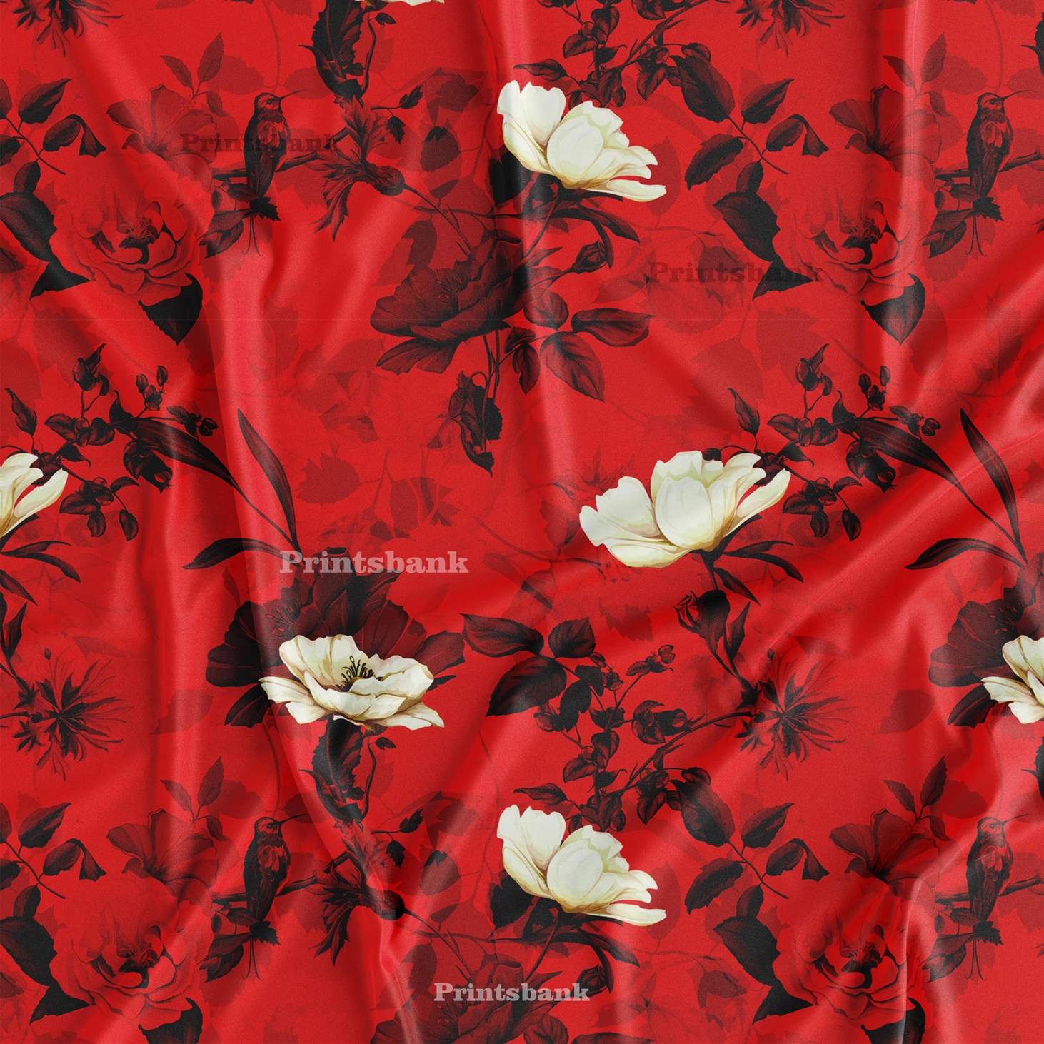 Blood Red Floral With Bird Printed Fabric Wholesale Surat Market