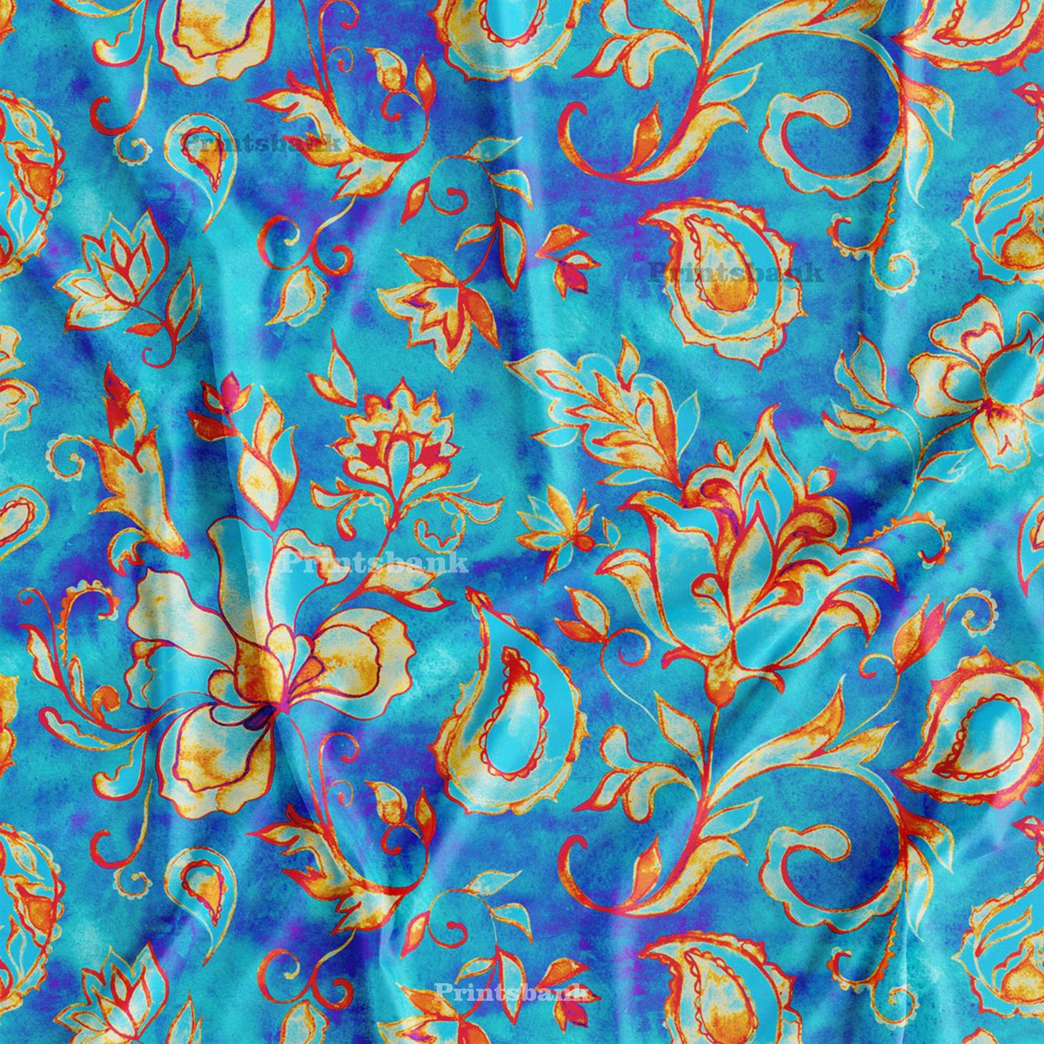 Bright Blue Paisley Printed Fabric Manufacturer India