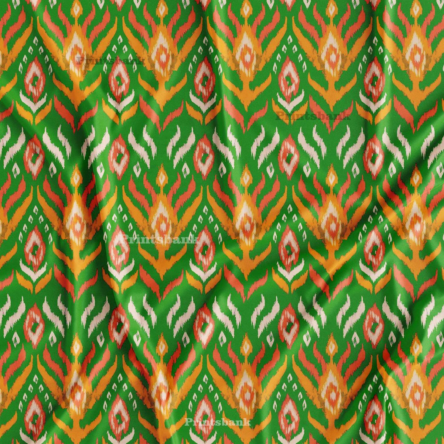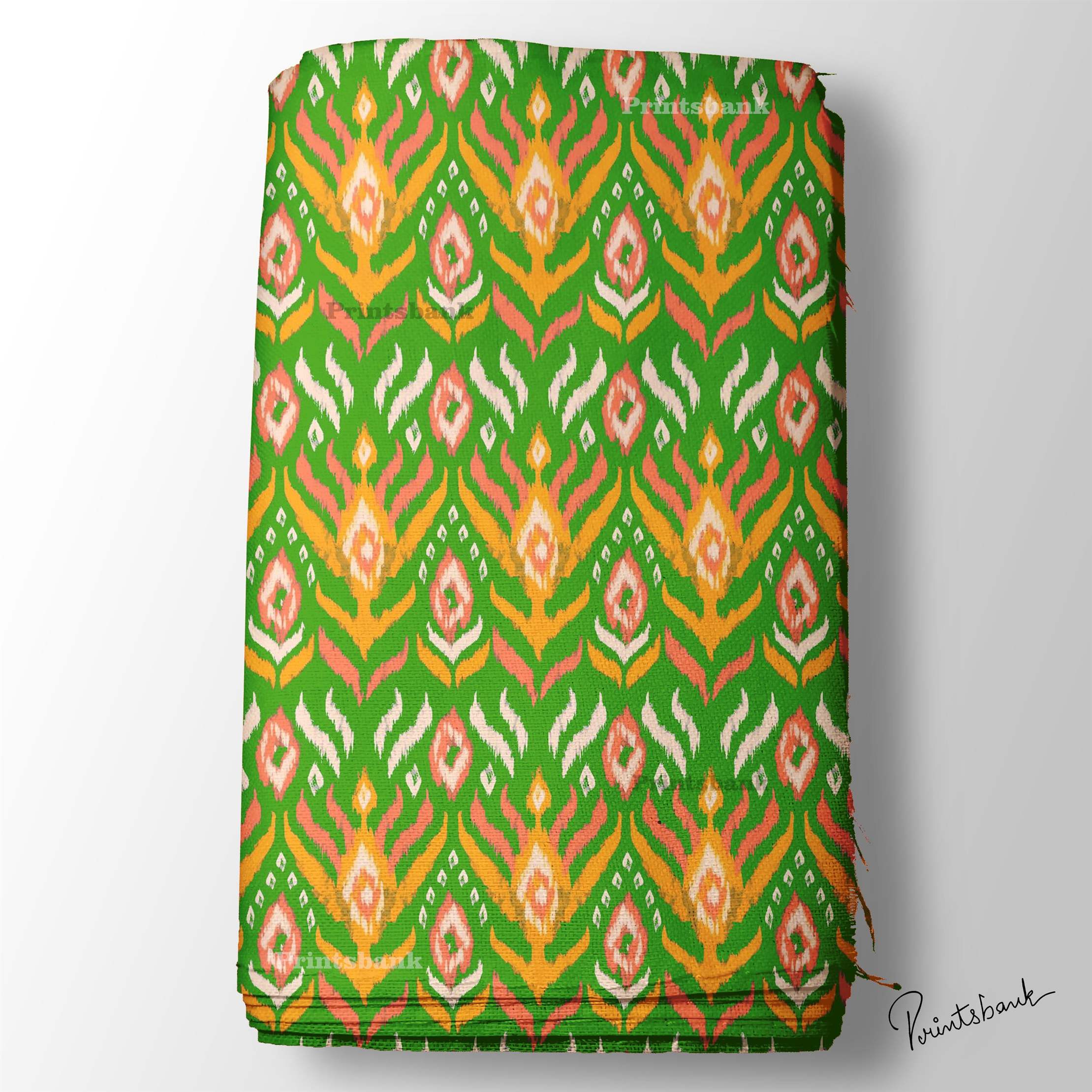 Bright Green With Yellow Ikat Pattern Digital Printed Fabric Manufacturer