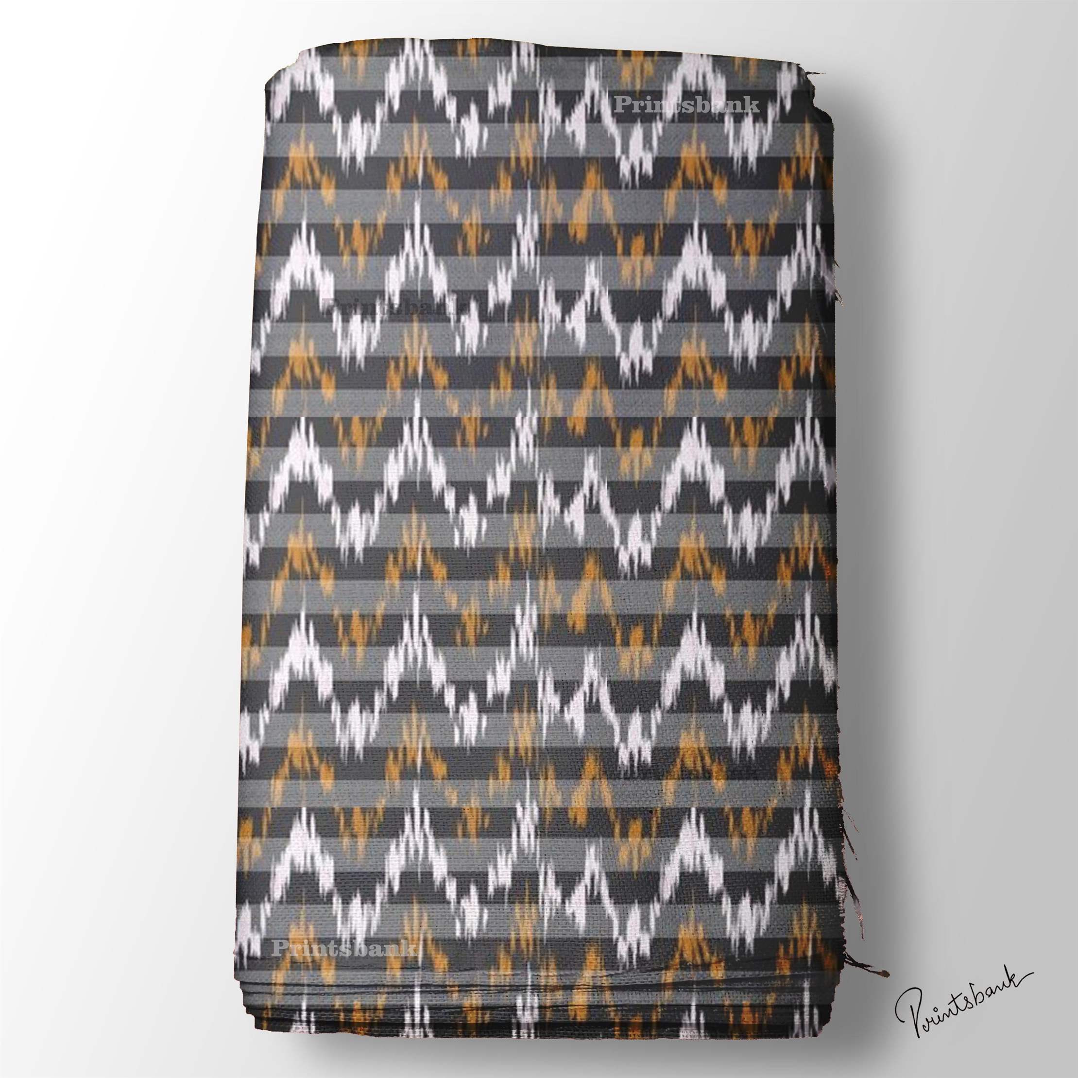 Brown ZigZag Ikat Digital Printed Fabric Material