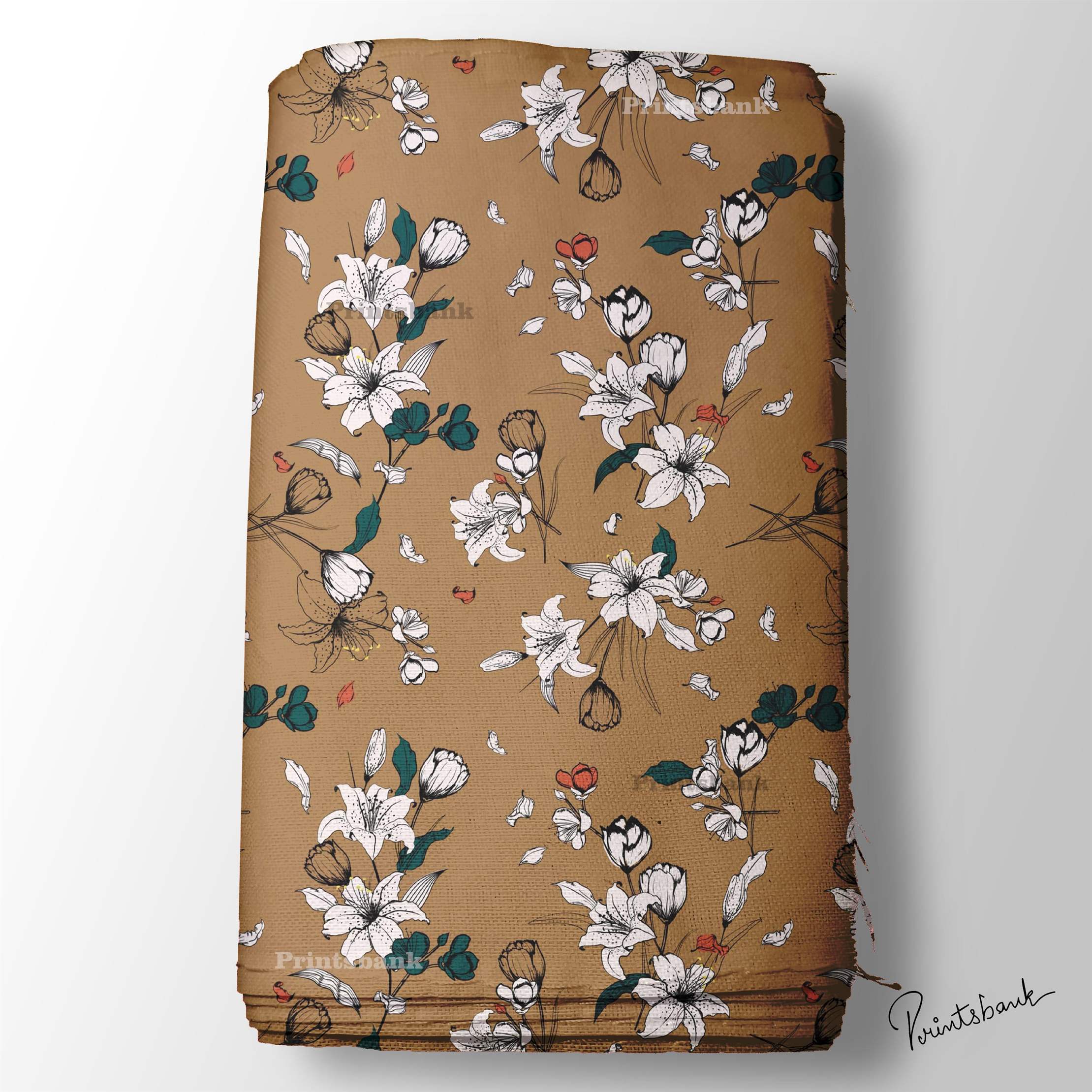 Coffee Color Designer Floral Printed Fabric Wholesale Price