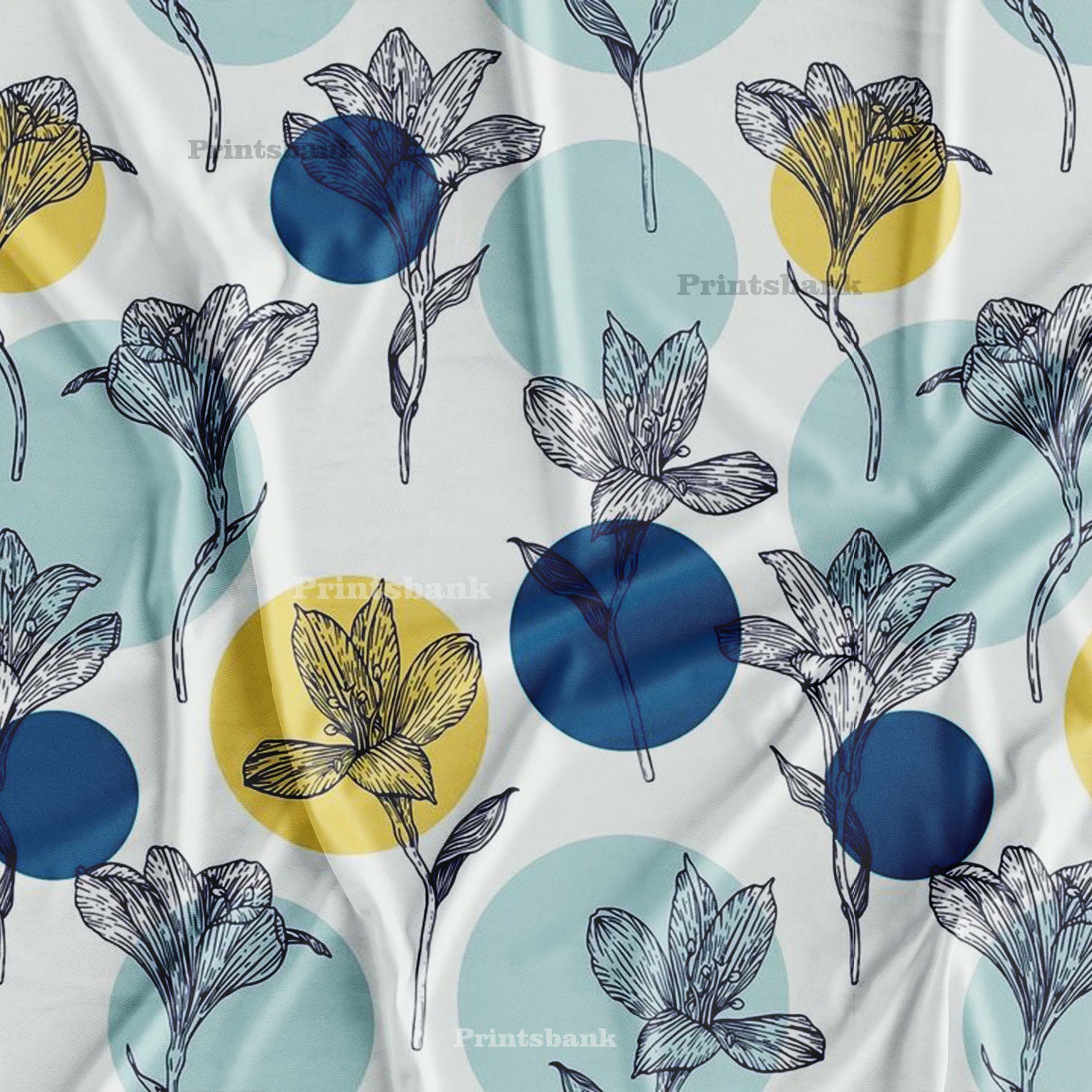 Colourful Circle Floral Digital Printed Fabric Wholesale Market