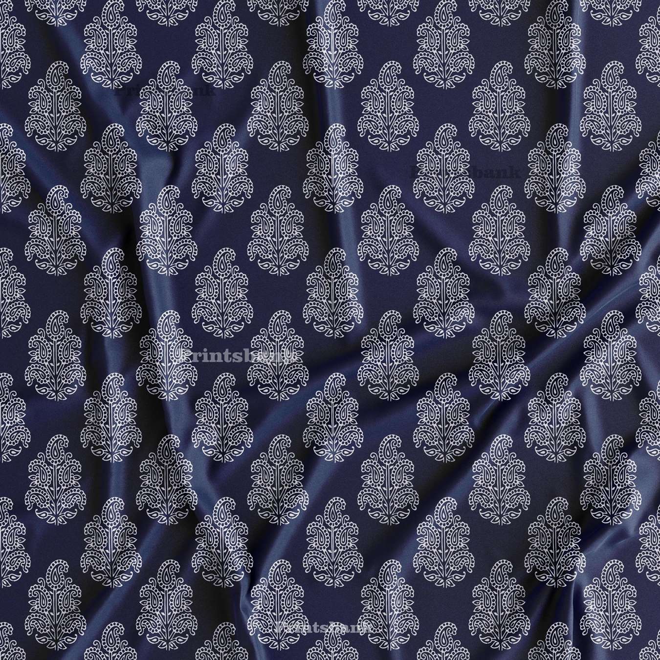 Dark Blue Floral Motif Printed Fabric For Kurti Wholesale