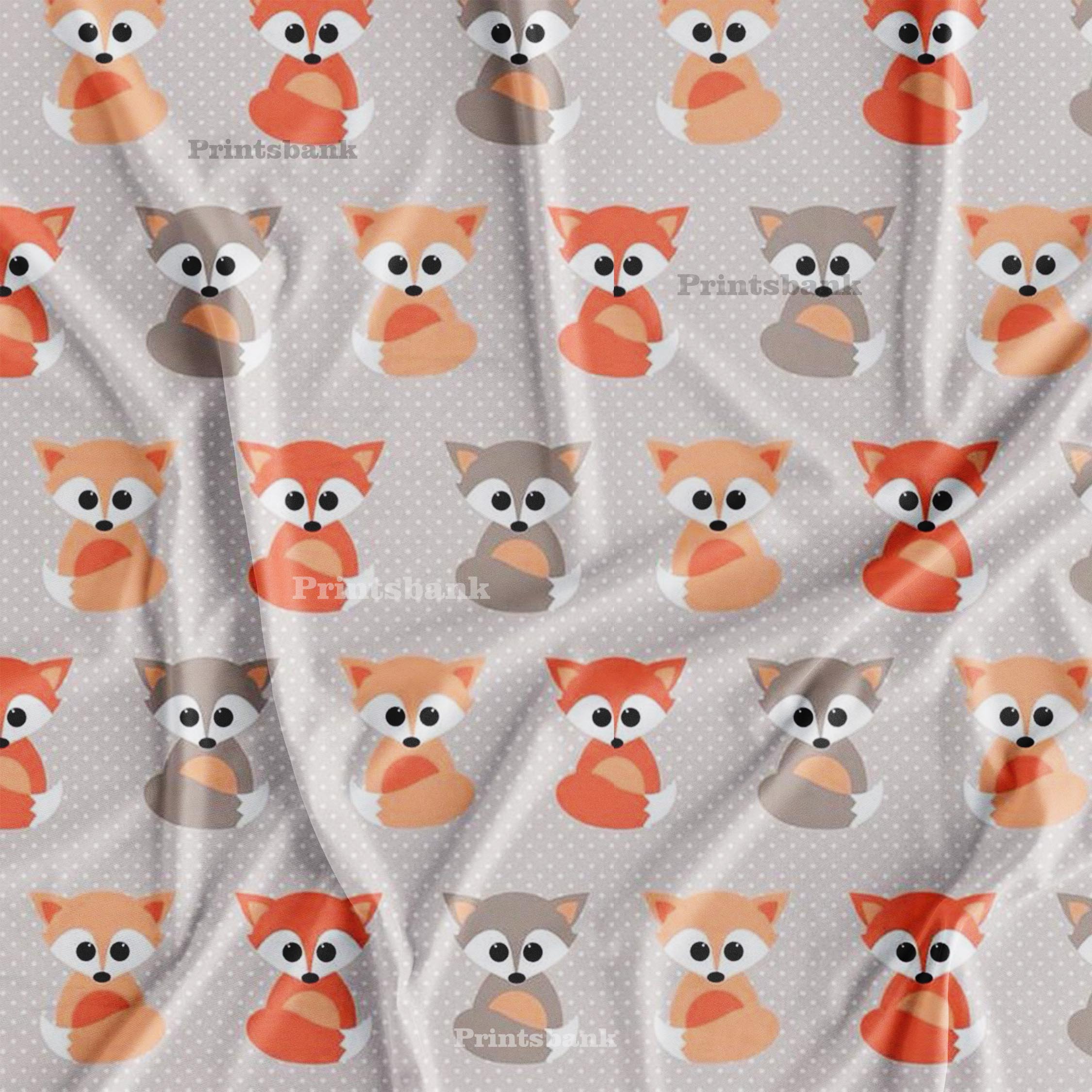 Gray & Orange Fox Pattern Kid's Printed Fabric
