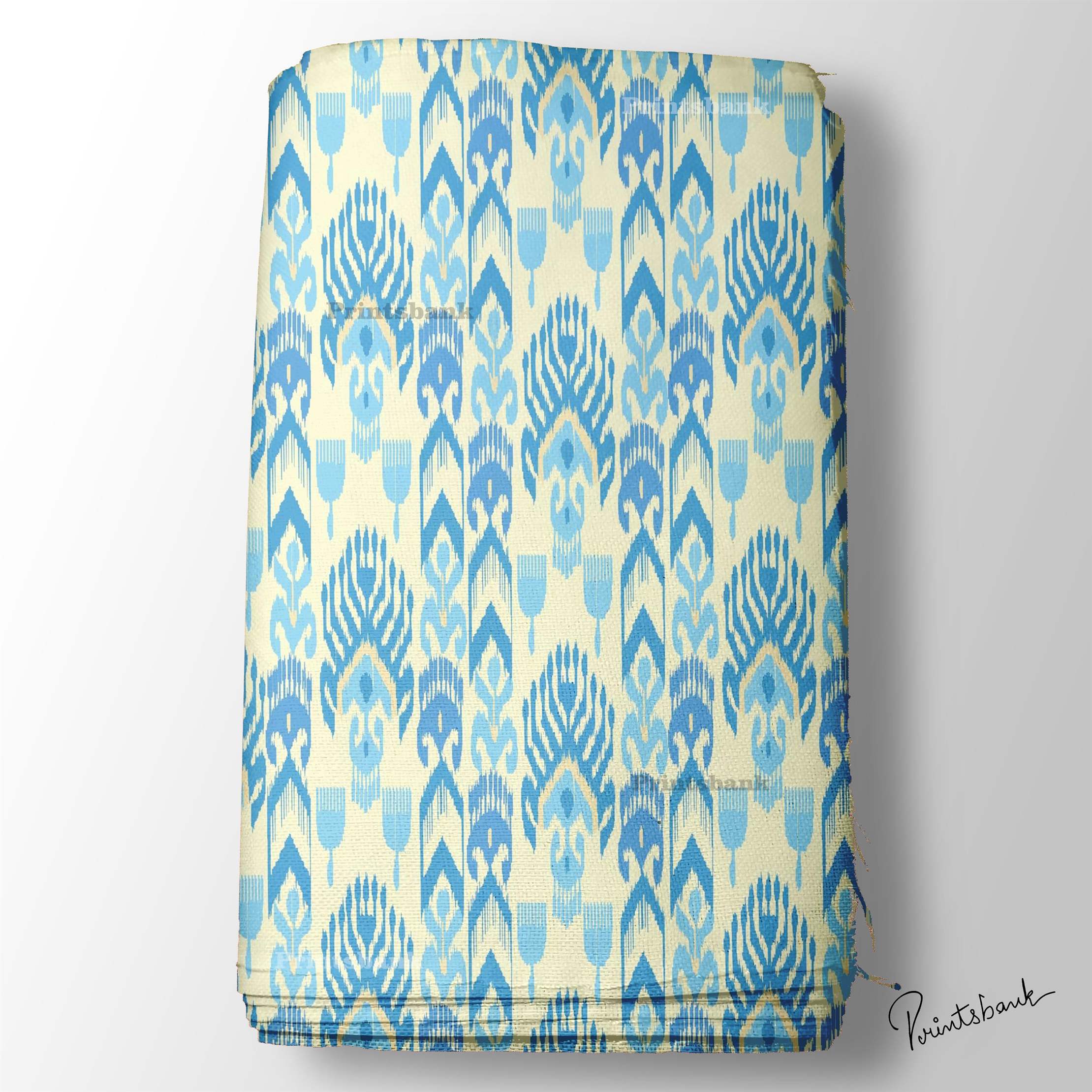 Buy Online Ikat Digital Printed Fabric at Printsbank. Ikat fabrics that are used extensively in day to day life. Our Ikat fabrics collection includes the latest, fresh and trending design in the market. Ikat is a dyeing technique used to pattern textiles that employs resist dyeing on the cards prior to weaving and dyeing the fabric