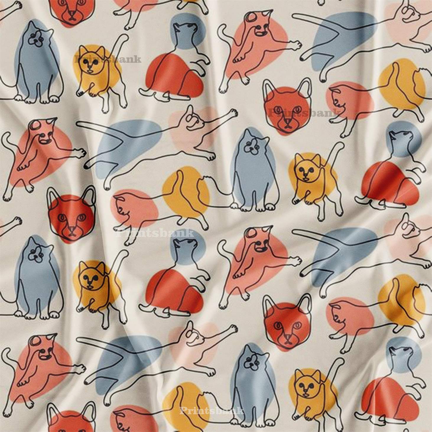 Multi color Cat Pattern Kid's Digital Printed Fabric