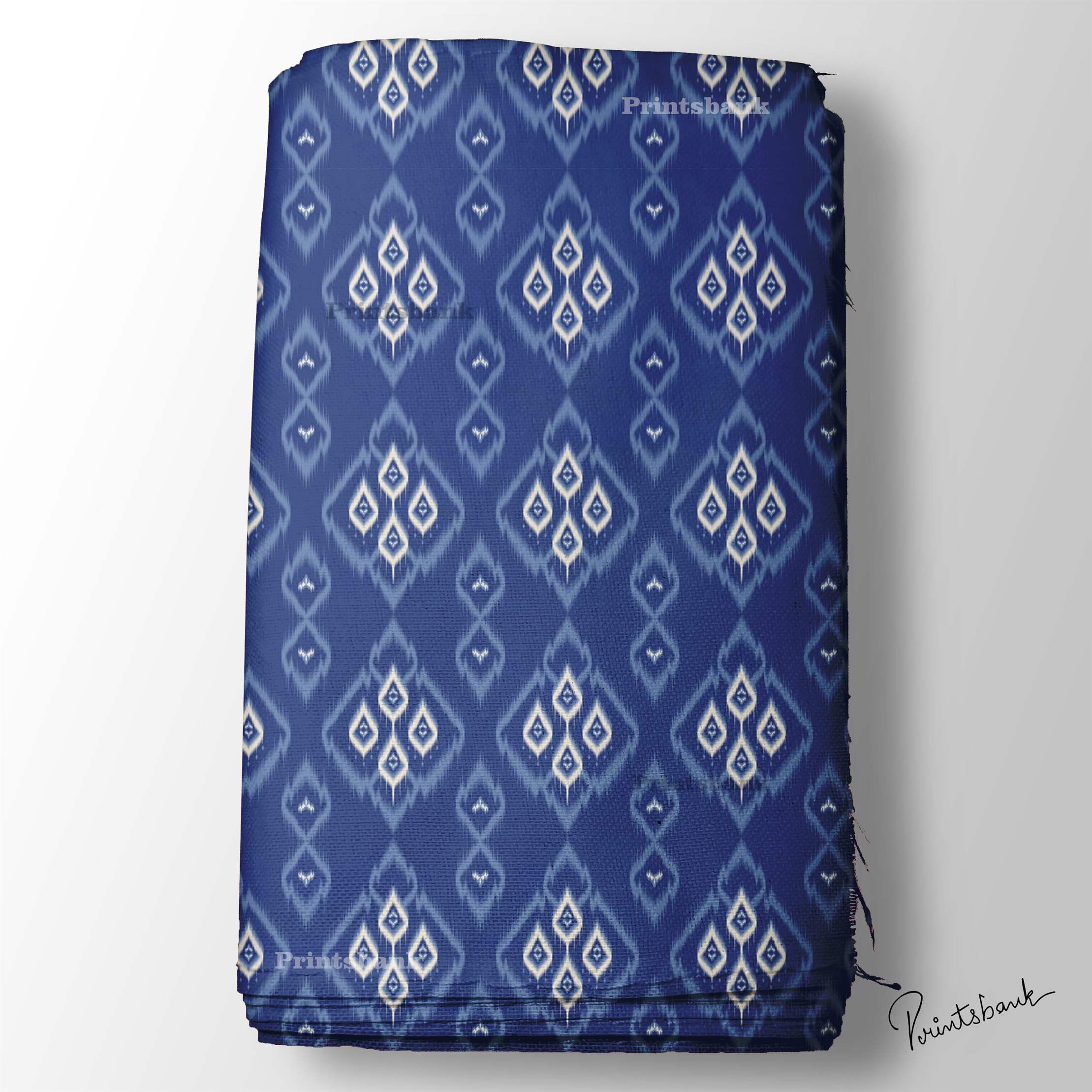 Navy Blue Ikat Digital Printed Fabric Material Wholesale Price