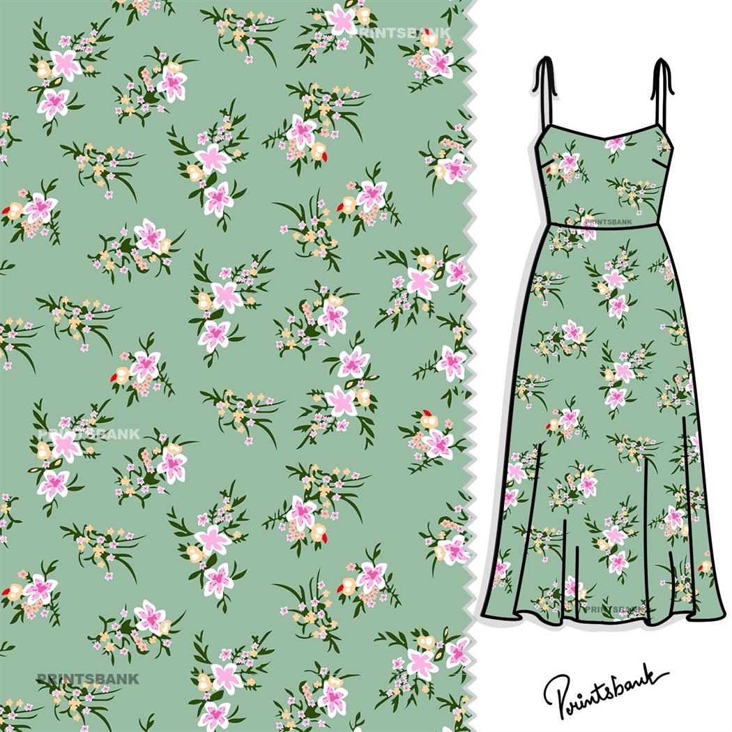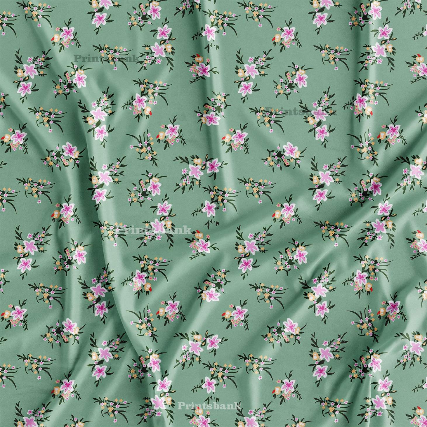 Cool Green Pink Bunches Lily Printed Clothing Material