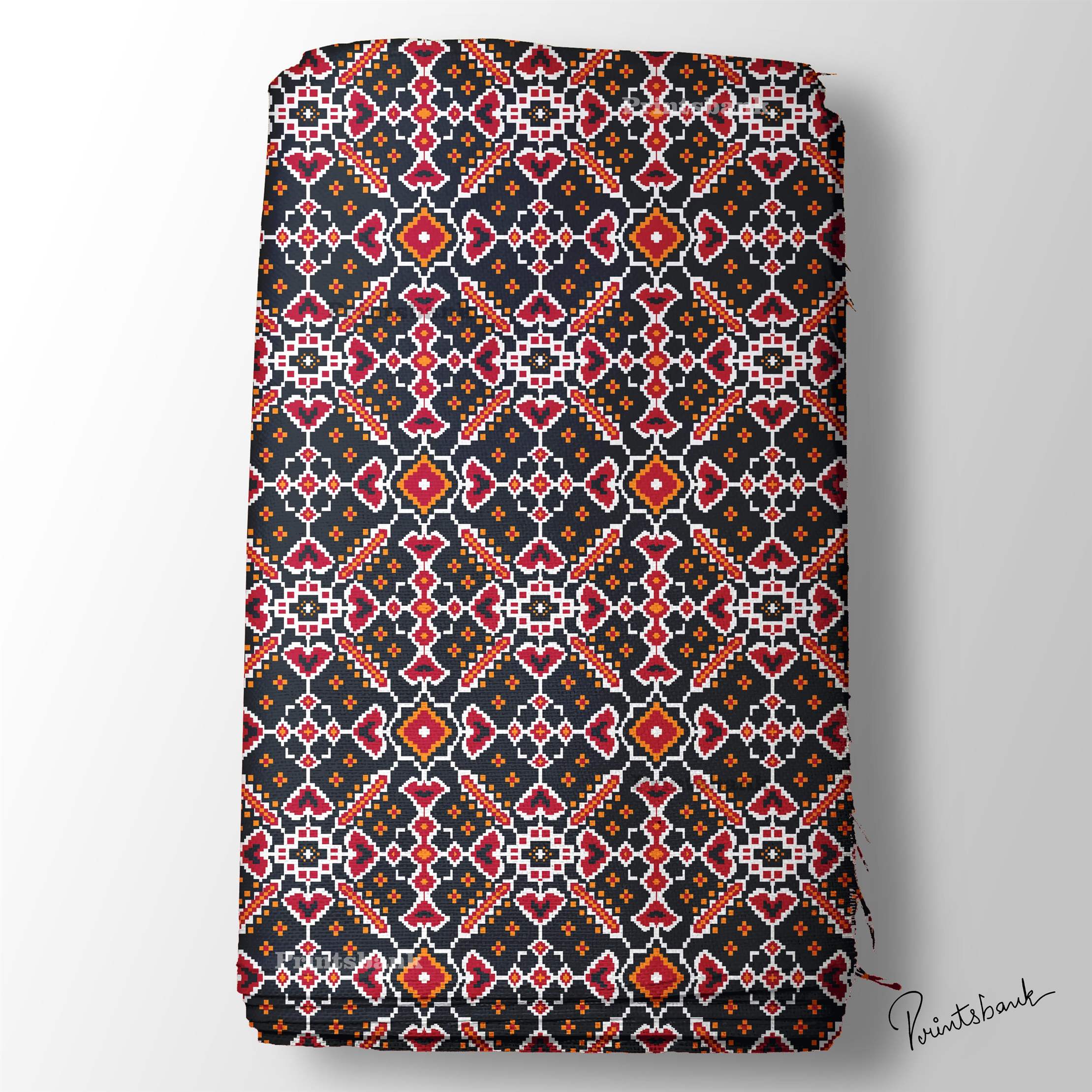 Black Orange Traditional Patola Printed Fabric For Festive Wear