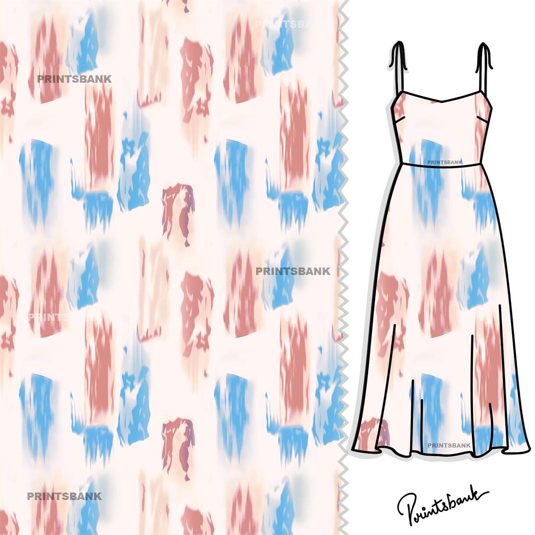 Baby Pink Blue Brush Printed Fabric For Designer Dresses