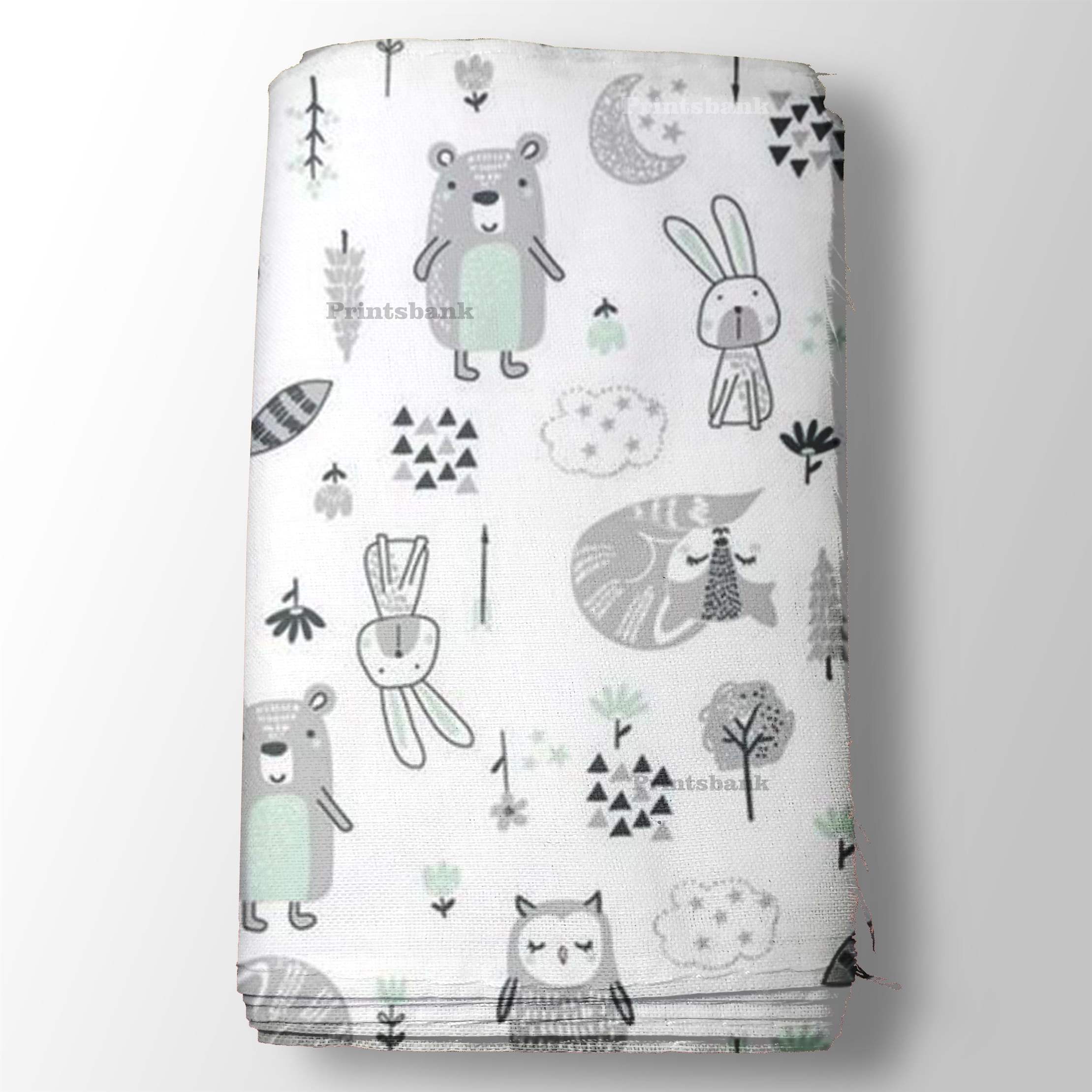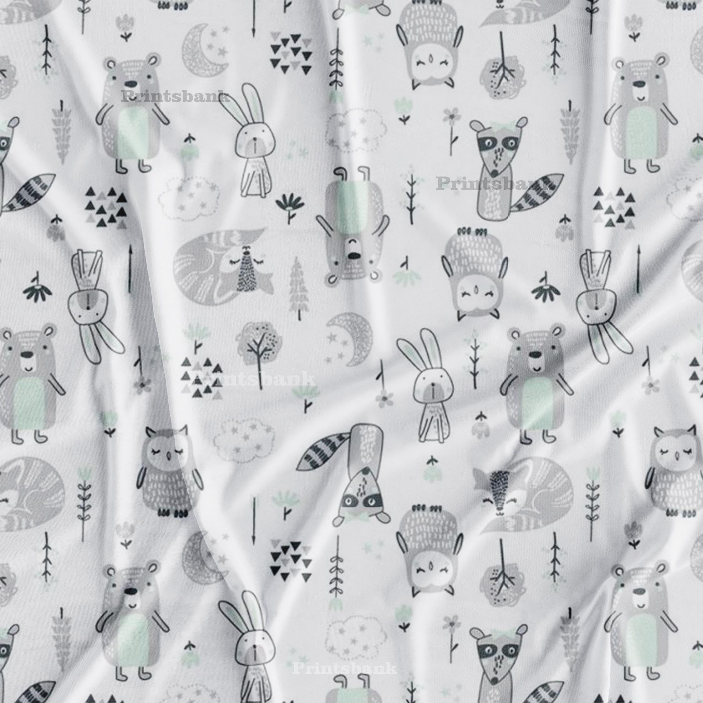 Teddy Owl Cute Baby Kid Printed Fabric in Grey White