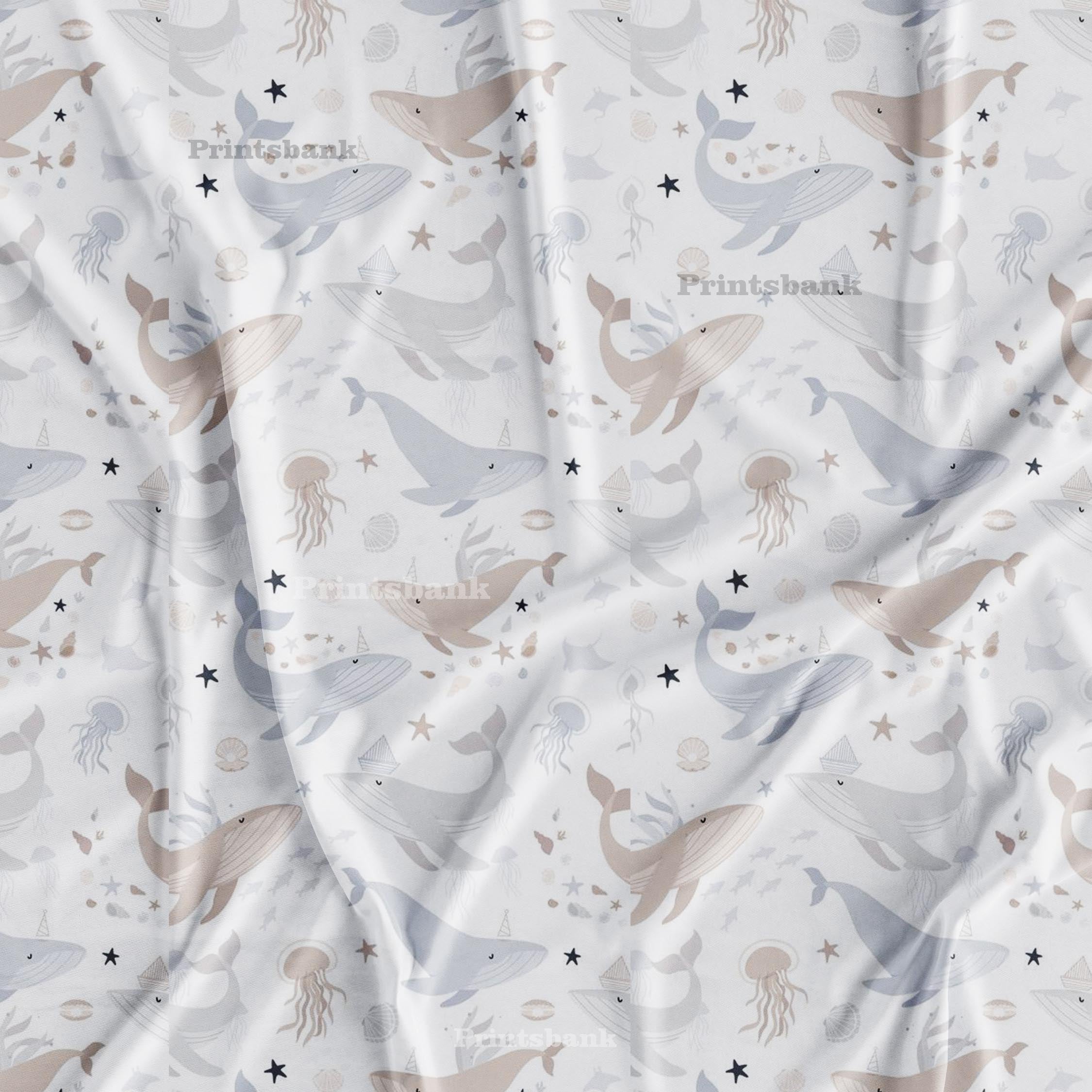 Pearl White Ocean Dolphin Kid's Printed Fabric