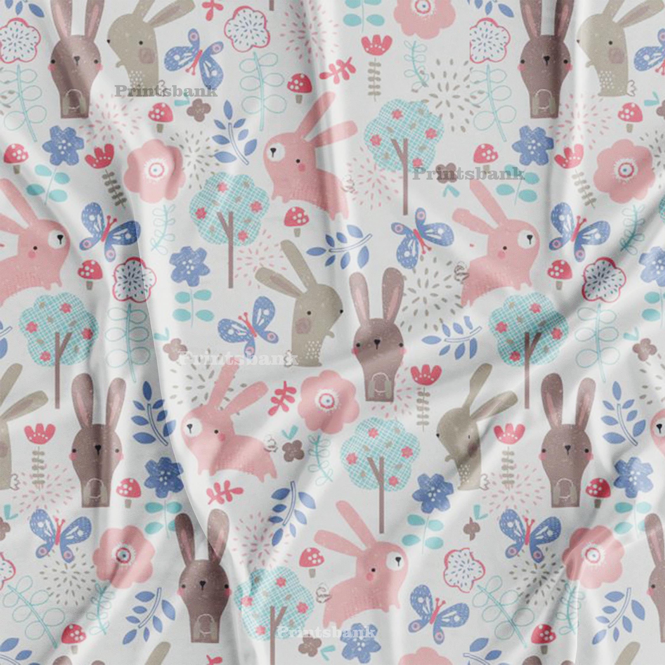 White & Pink Rabbit Kid's Digital Printed Fabric