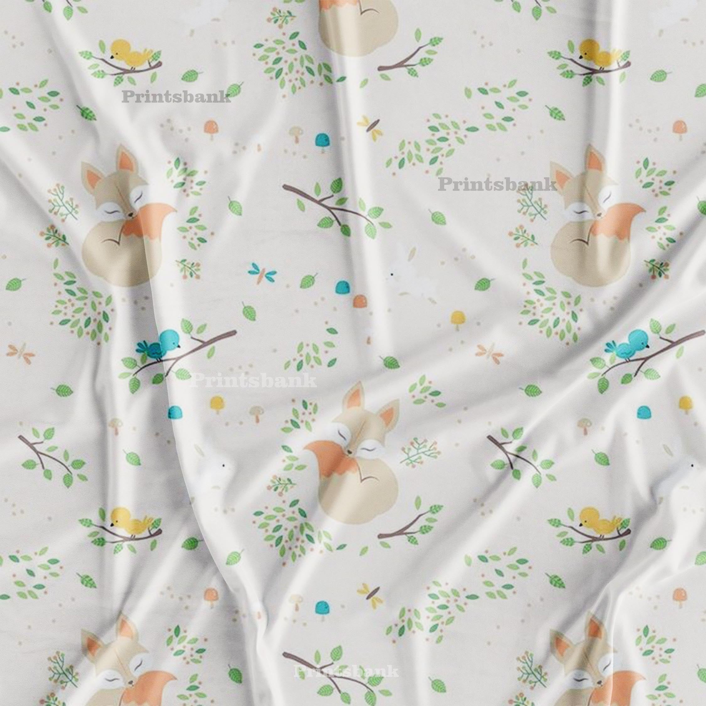 White and Bird Kid's Digital Printed Fabric