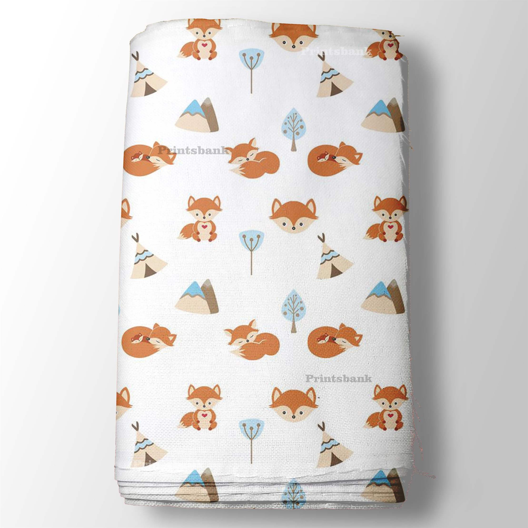 Pearl White & Orange Fox Pattern Kid's Printed Fabric