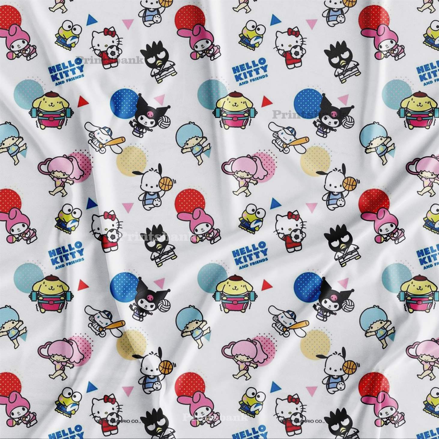 Ivory White & Kitty Story Kid's Digital Printed Fabric
