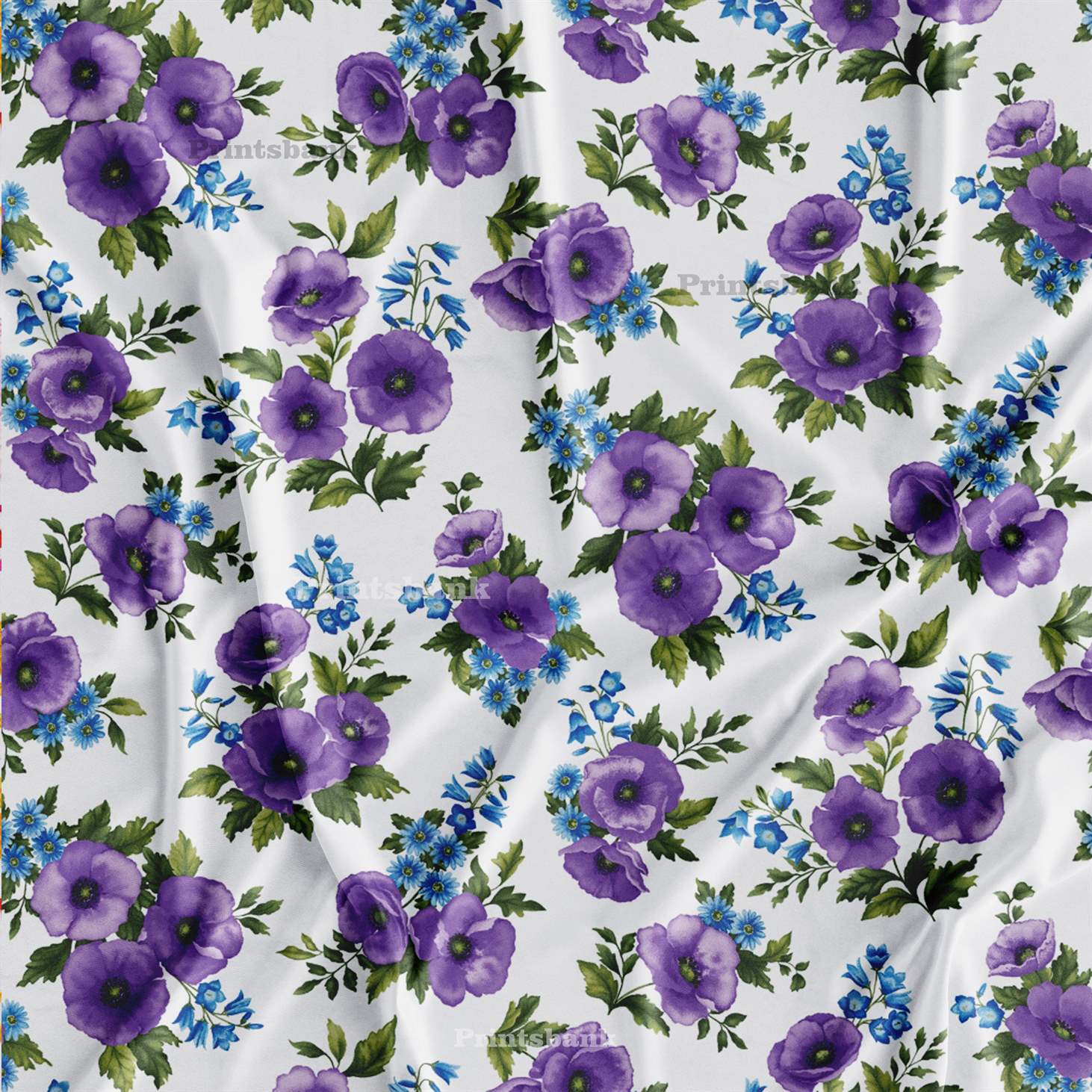 White Lavender Floral Digital Printed Fabric Wholesale Price