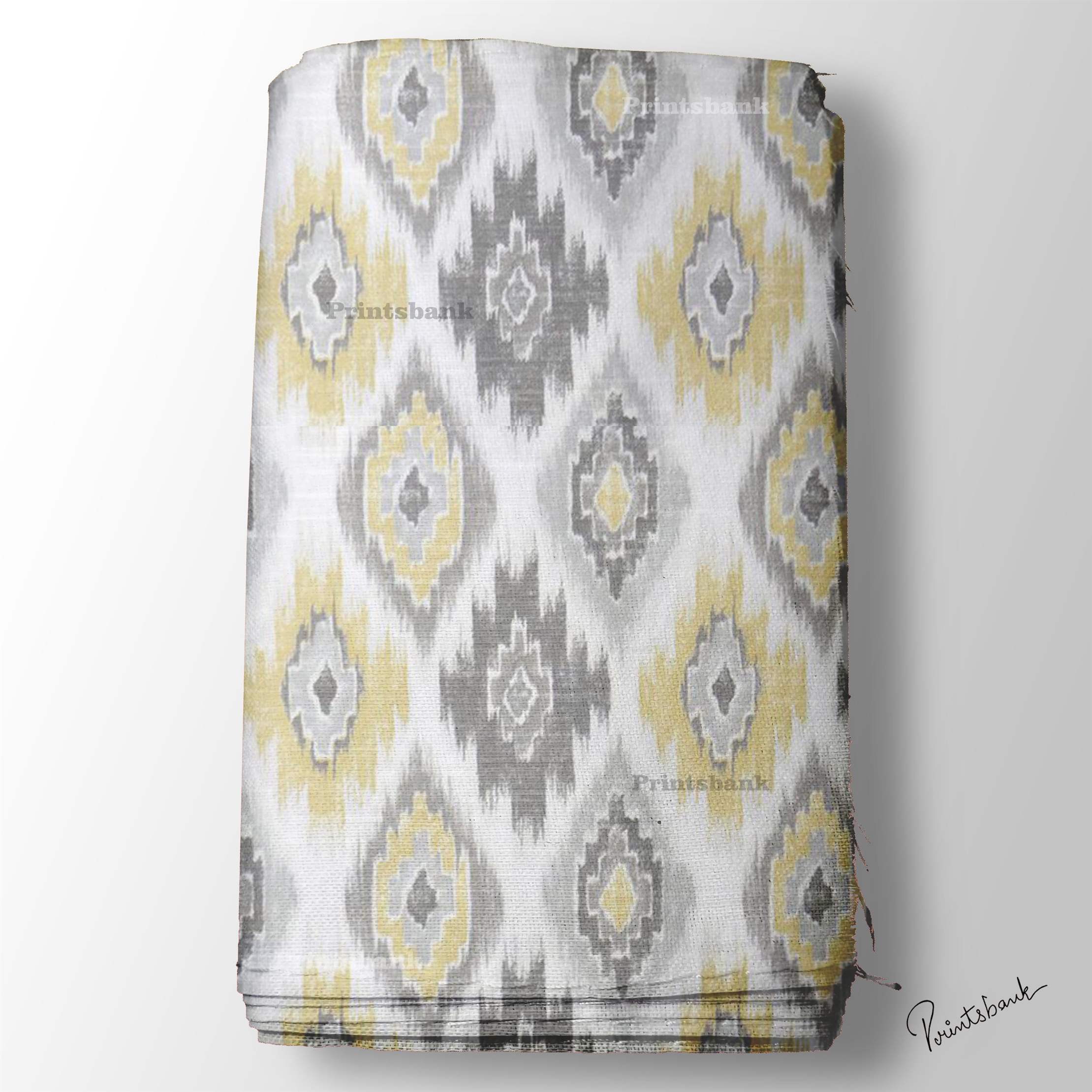 White Yellow Ikat Digital Printed Fabric Material